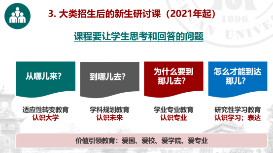 九月的校园又迎来了一批年轻稚嫩的新面孔,他们还没有褪去中员工的青涩,内心充满了对老员工活的好奇和对知识的渴望,将在这里开启新的人生篇章。此时的他们对未来无限憧憬却又对未知心怀忐忑。一切皆有可能,一切都还迷茫,班主任制度和新生研讨课程正是帮助他们找准航向、教会他们独立思考努力奋斗的有效方式和重要途径。