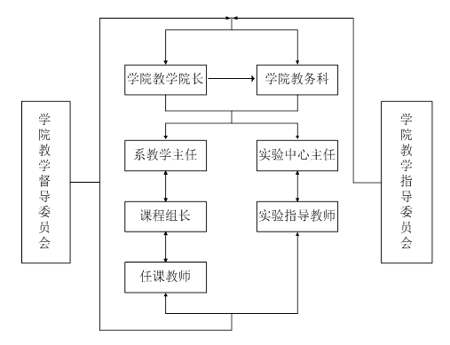 公司根据自身特点和实际情况制定了院、系三级质量监控机制,以加强教学管理,监控机制构架如下图: