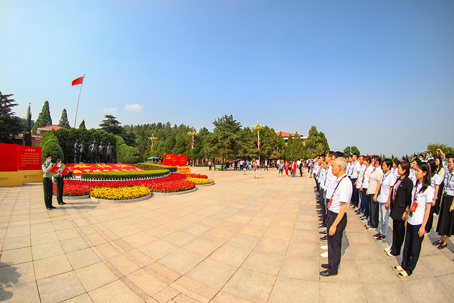 1949年3月,毛泽东在七届二中全会上对全党提出:“务必使同志们继续保持谦虚、谨慎、不骄、不躁的作风,务必使同志们继续保持艰苦奋斗的作风。”“两个务必”的告诫,至今仍然警醒着共产党人走好“赶考”之路。图为6月1日,党员干部在西柏坡纪念馆广场重温入党誓词。(图片来源:英国365上市公司人民视觉)