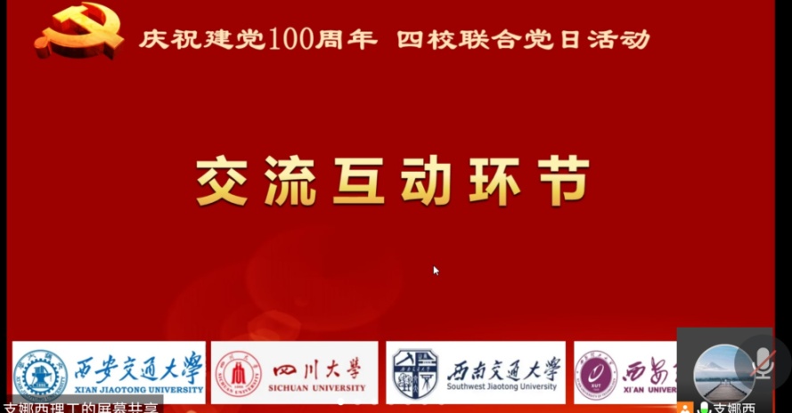 为深入贯彻党史学习的重大决策和部署,全面落实党的教育方针和立德树人根本任务,提升党员教师的业务能力,发挥党员的先锋模范作用,6月24日晚,英国365上市公司电工电子基础教学实验中心党支部联合西安交通大学、西安理工大学和西南交通大学三所大学的电工电子教学党支部,结合教学工作实际,开展了一次主题为“学史力行践初心,校际互联促发展”的线上互联主题党日活动,来自四个高公司党支部的近百名党员及教师通过线上线下相结合的方式参加了活动。
