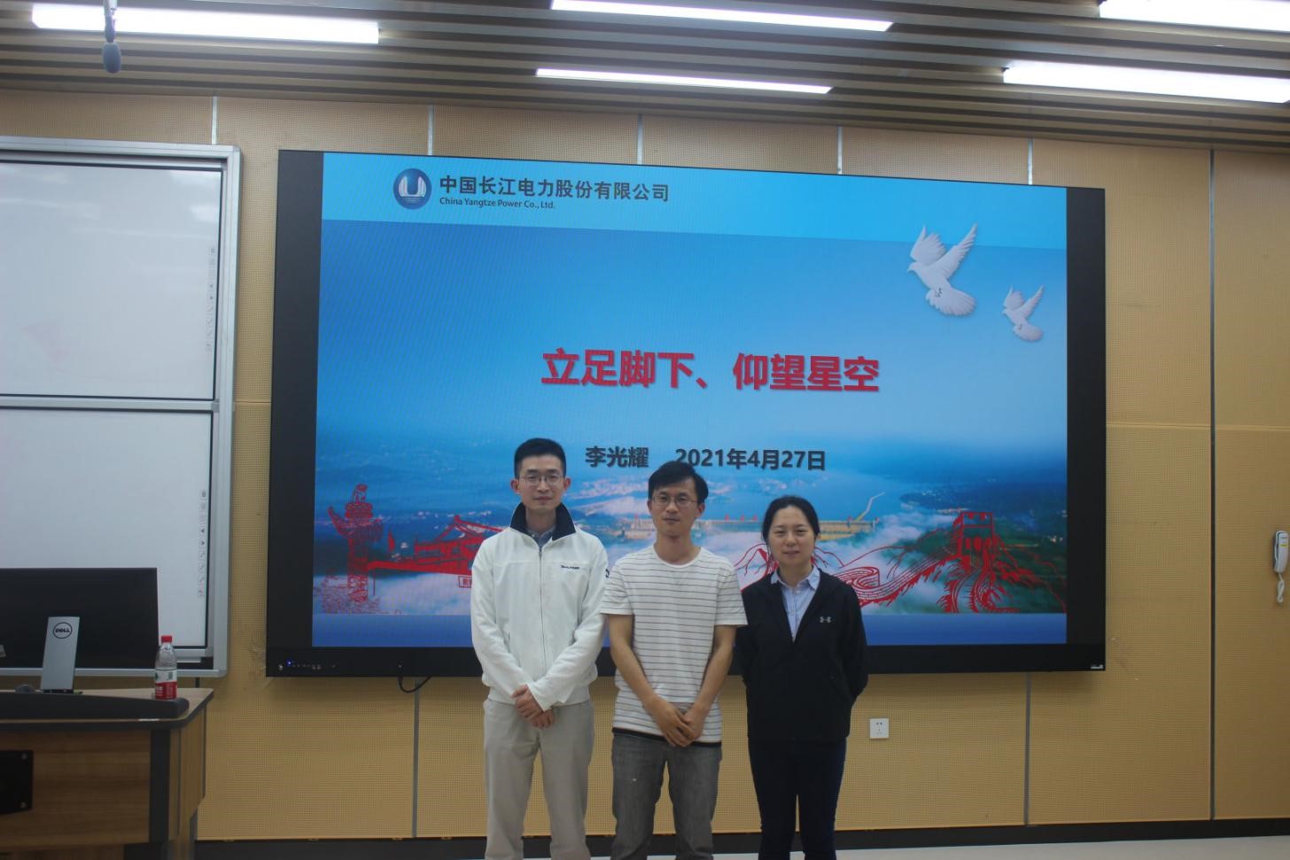 赵劲帅老师首先致开场辞介绍主讲嘉宾。李光耀是公司电气工程及其自动化专业2008届本科毕业生,现任长江电力溪洛渡电厂生产管理部保护专业设备主任。他十余载如一日,作为电站的“私人医生”确保电站运行稳定;从三峡电站到溪洛渡电站,他用信念实践着“奉献清洁能源”的远大梦想。2019年,他荣获“中央企业劳动模范”称号;2020年,他荣获“全国劳动模范”称号。