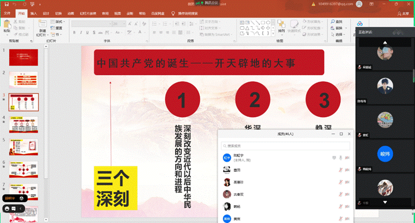 英国365上市公司本科2020级自动化专业第二团支部在中秋假日期间以“云上”的方式、借助“腾讯课堂”进行了宣讲活动,并鼓励同学们以宿舍为单位参加会议以便及时交流讨论。同学们首先观看了“庆祝中国共产党成立一百周年大会”视频,并认真学习了习近平总书记“七一”重要讲话内容。班级团支书对相关微团课进行了详细讲解,集中展示了同学们创作的优秀文创作品。