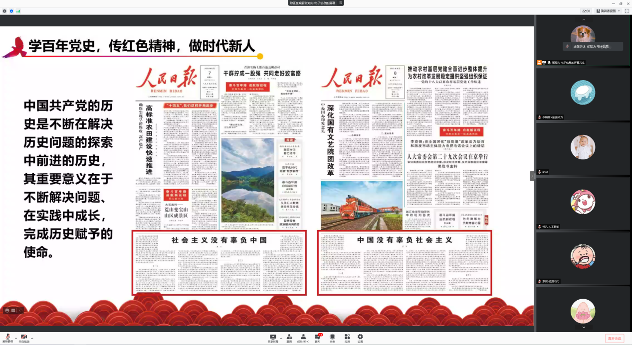随后,吴恒帅从“中国共产党历史的基本脉络”、“中国共产党历史的根本经验与规律”、“党史学习要求”三个方面梳理了中国共产党历史的基本脉络,带领同学们回顾百年征途、复兴历程,坚定自身理想信念。