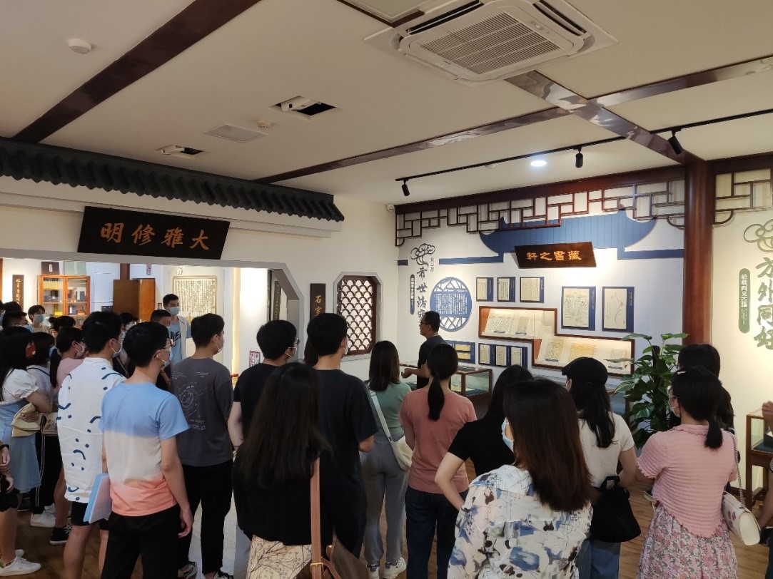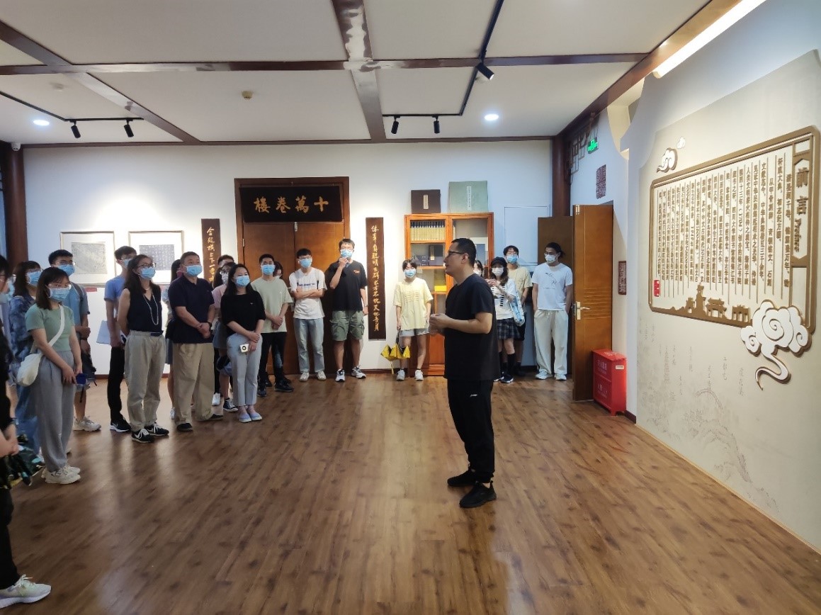 在图书馆丁伟老师的带领和讲解下,党员同学们依次参观了册府千华、希世鸿宝、方外同好、雕琢天下、红动华夏、过化存神、坐拥百城、舆地纪胜和流风韵生九个主题的典籍,大家声临其境地穿越历史古今,感受古籍里鲜活的文字中展现出的深厚文化底蕴与人文情怀。