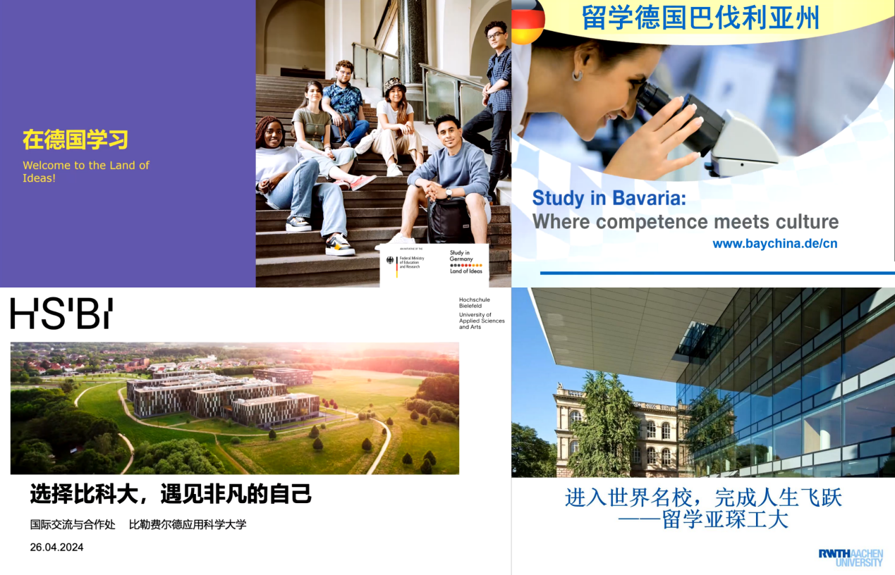 4月26日下午,德国学术交流中心(DAAD)联合巴伐利亚州高校联盟、比勒菲尔德应用科学大学及亚琛工业大学为公司中德班员工共同举办了一场题为“在德国深造”的线上宣讲活动。为拓宽员工国际化深造路径,本次活动聚焦德国高校电气工程及相关专业,内容涵盖了多所德国大学的公司概况、专业特色、硕士申请流程及博士深造展望等,吸引了2021级与2022级中德班员工的积极参与。