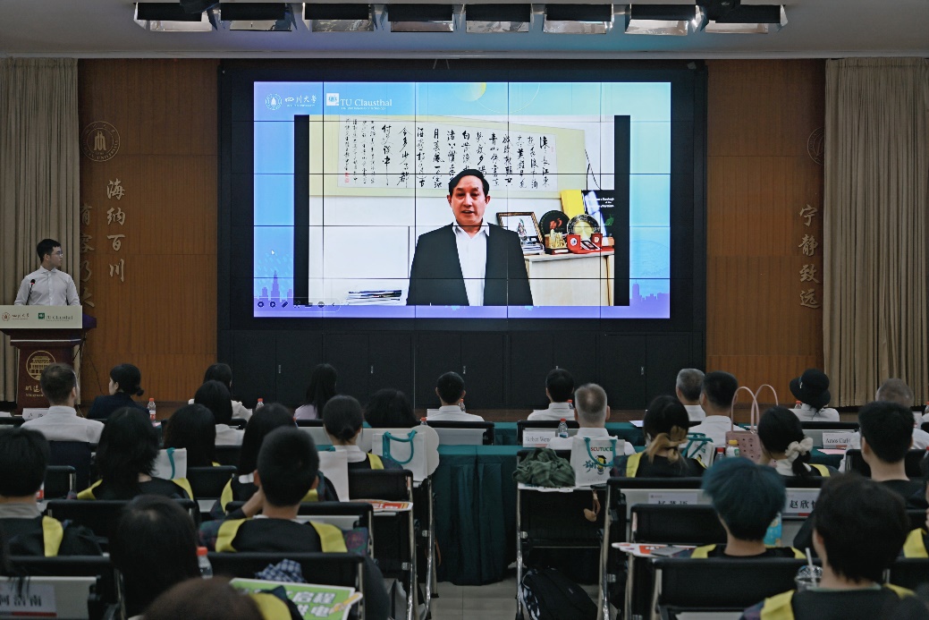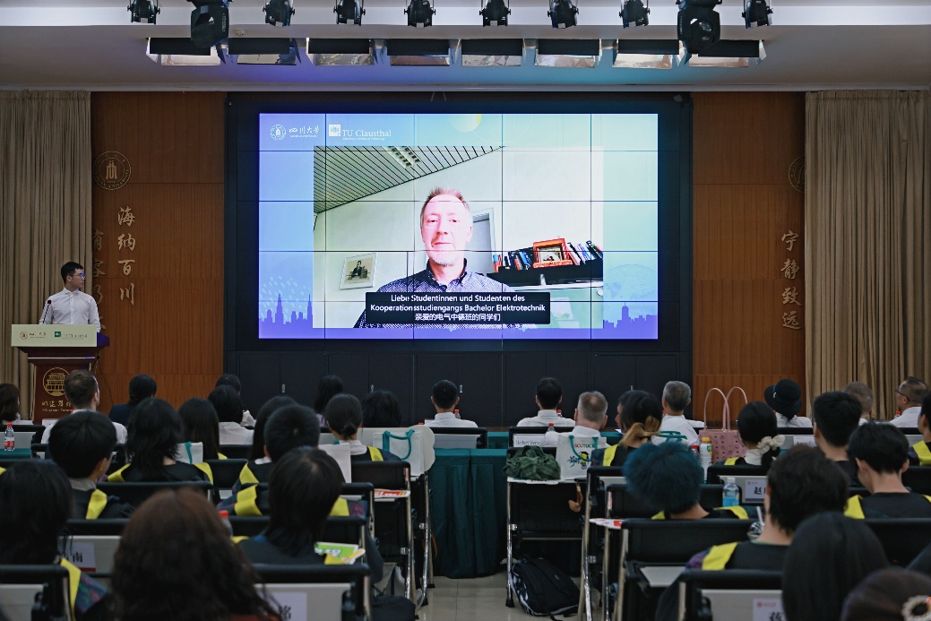 克劳斯塔尔工业大学副董事长Stefan Hartmann、电气工程专业负责人Christian Rembe、中国事务专员兼中国能力中心主任侯正猛分别发表视频致辞。他们充分肯定了中德班首届毕业生的优秀表现,这不仅是个人的重要成就,也是双方国际合作中的一个里程碑。他们鼓励同学们在未来职业发展中不断追求卓越,勇于迎接挑战,保持开放与好奇心,同时对两校今后深化合作表达了良好祝愿,展现了两董事长期友好的合作情谊。