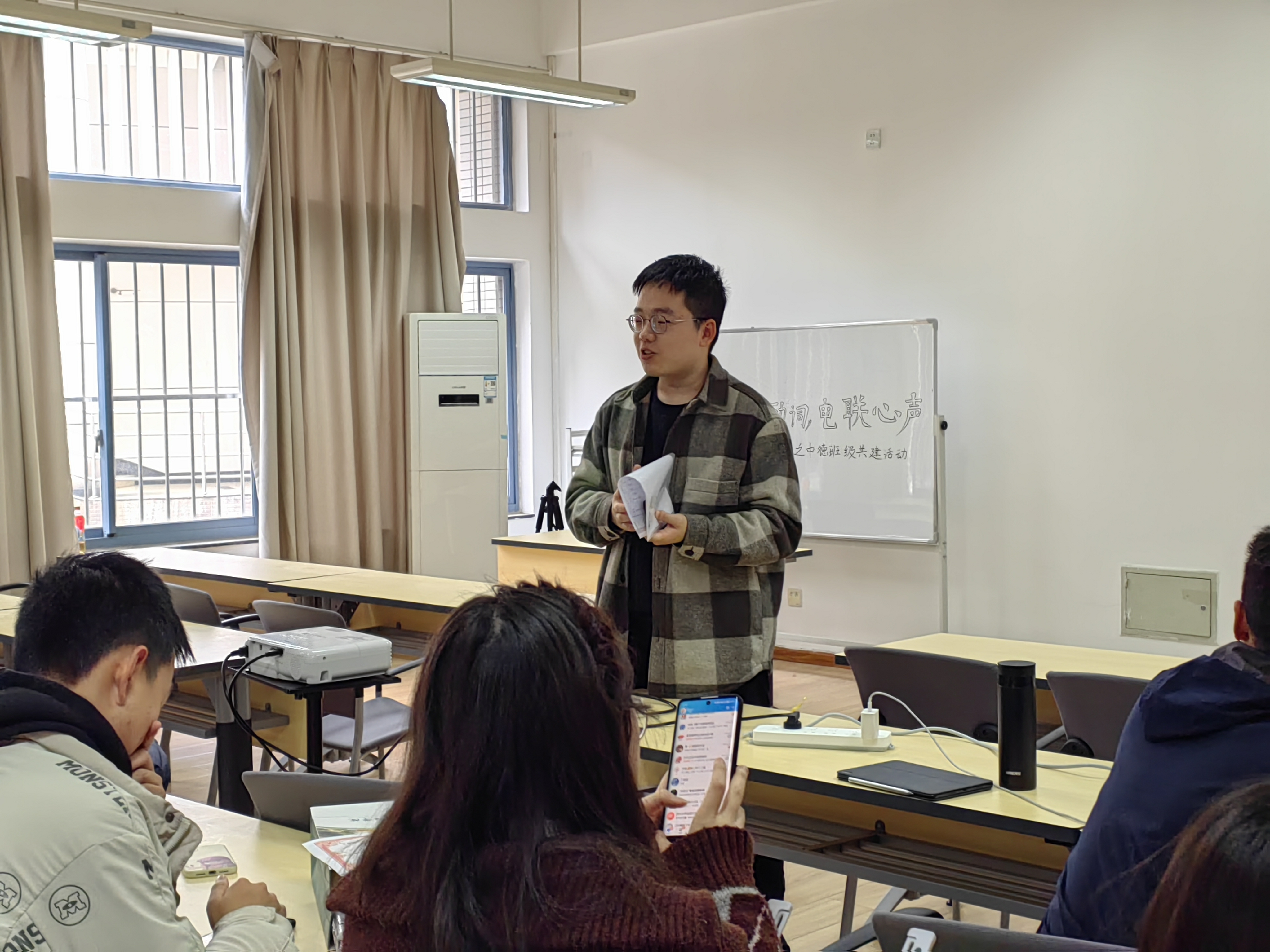 随后,中德班辅导员朱愉田老师发言,肯定了同学们的学习状态,鼓励同学们走出寝室、增加交流,凝聚2021级中德班“百佳员工集体”的向心力、战斗力,为2022级同学起到榜样示范作用,相信中德班的同学们在未来的学业中都能取得理想的成绩。
