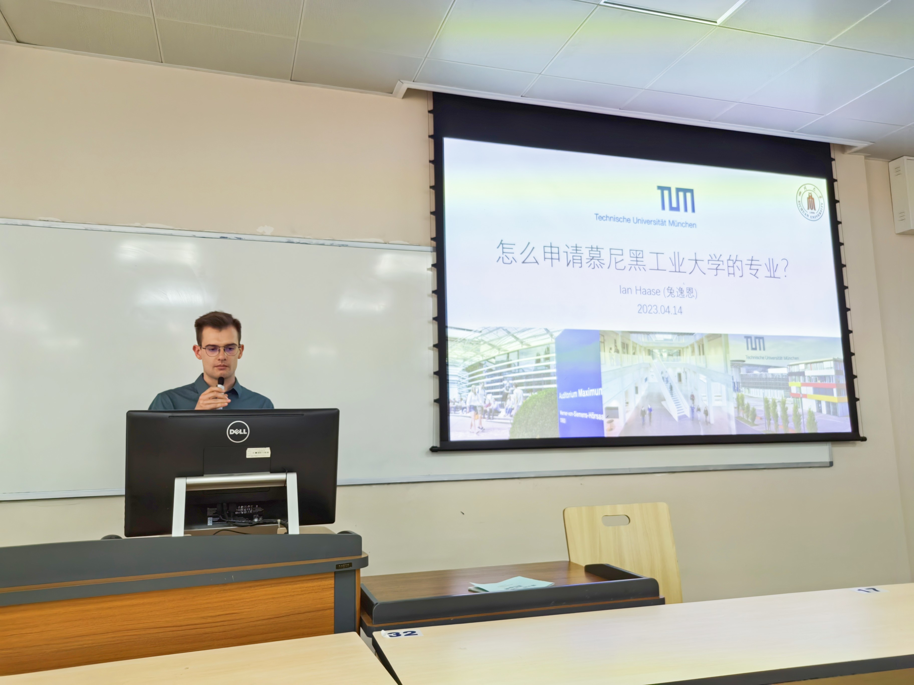 之后,德国职工Ian Haase与同学们分享了大家关心的申请德国慕尼黑工业大学硕士研究生的相关流程。