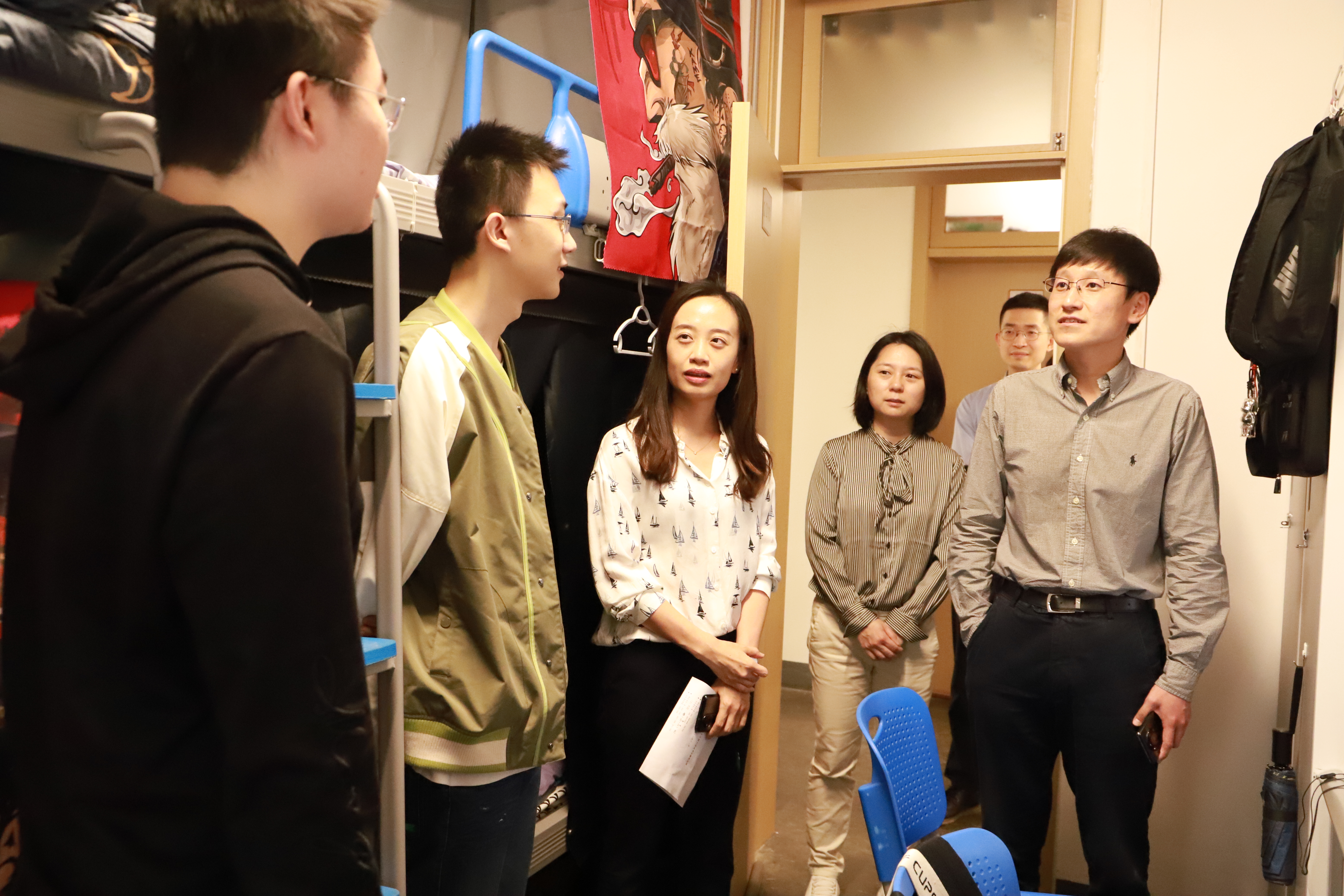 围绕进一步落实“三全育人”机制,倾听员工心声,畅通沟通桥梁,促进员工全面发展、健康成长,5月26日下午,公司党委书记赵昱辉,党委副书记戴婷婷,以及辅导员李程、赵劲帅老师深入望江校区北园员工宿舍调研,走访查看员工的学习生活情况。