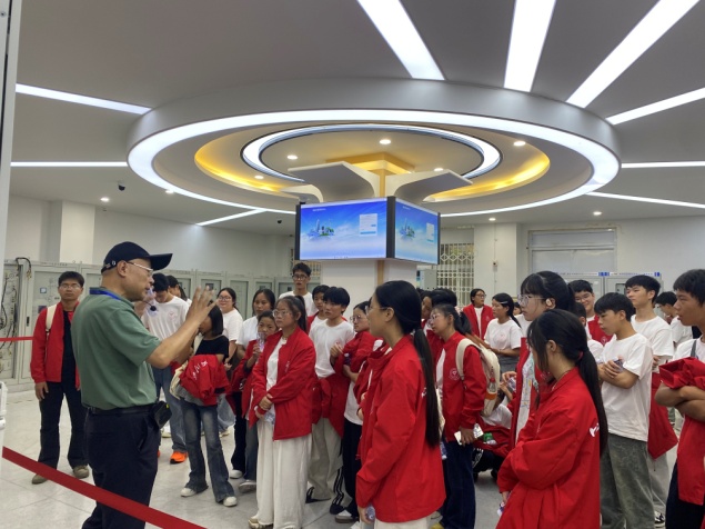 随后,同学们依次参观了高电压实验室、新型电力系统与综合能源系统实验室,了解了公司的专业方向以及直流特高压输电、清洁能源、综合能源系统及电能质量控制等先进能源技术的发展趋势。从户外高大陈旧仍不失威严的电气设备,到室内一排排先进智能化电气控制屏,同学们感受到我国电力行业科研人员承前启后、勇攀高峰的拼搏精神,当解说到我国特高压输电技术处于世界领先地位时,现场响起了自豪的掌声。