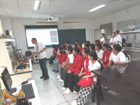 在智能控制及工业机器人实验室,公司自动化专业的学长从介绍智能车比赛赛况入手,现场展示了自制智能小车的循迹自动驾驶,让同学们对运动控制技术的学科背景和核心技术有了初步的认知。而罗老师关于智能机器人的讲座,从视频观摩到机器狗运动表演,充满趣味和欢乐最后,大家争先恐后地参与了机器狗操控互动,获得了一次与前沿科技零距离深度体验的难忘经历。