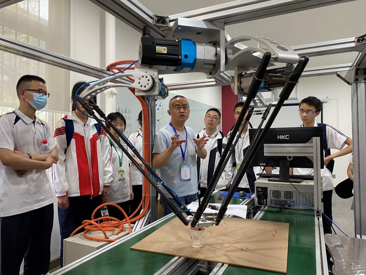 研学活动中,同学们参观了高电压实验室、新型电力系统与综合能源系统实验室、能源互联网实验室、新能源实验室、继电保护实验室等,了解了特高压、新型电力系统、清洁能源、综合能源系统及电力控制保护技术等先进能源技术及行业趋势,当了解到目前我国的特高压等多项电力技术处于世界领先时,现场响起了同学们自豪的掌声。在云计算实验室工作人员向大家科普了云计算及其构成等知识;在智能控制及工业机器人实验室,同学们与机器人互动,施教于乐,拓展了大家的视野,激发了学习热情。