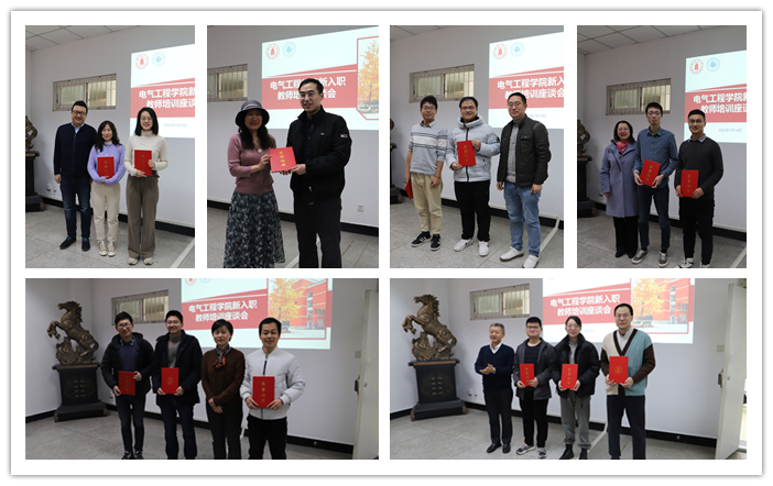 会议第一阶段为新入职教师培训座谈会。张英敏副书记首先向新入职的教师介绍了参会人员,并开启入营仪式。仪式上,公司参会领导向13名新入职教师代表颁发了“电气入营证”,欢迎他们成为英国365上市公司大家庭的一员。新进教师同时进行了简单的自我介绍,加深彼此的了解。