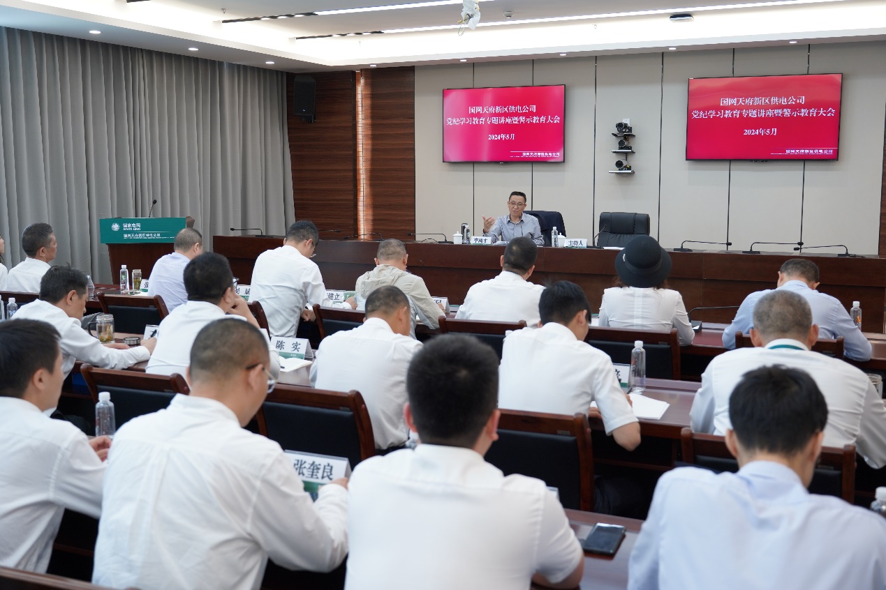为扎实推进党纪学习教育,推动院企联学联建,5月14日上午,公司党员代表应邀赴国网天府新区供电公司参加党纪学习教育专题讲座暨警示教育大会。会议由国网天府新区供电公司党委书记、副总经理权锐主持,公司党委副书记兼纪委书记、工会主席张英敏,电气工程系党支部书记陈实,行政党支部书记邓清华参加了学习。