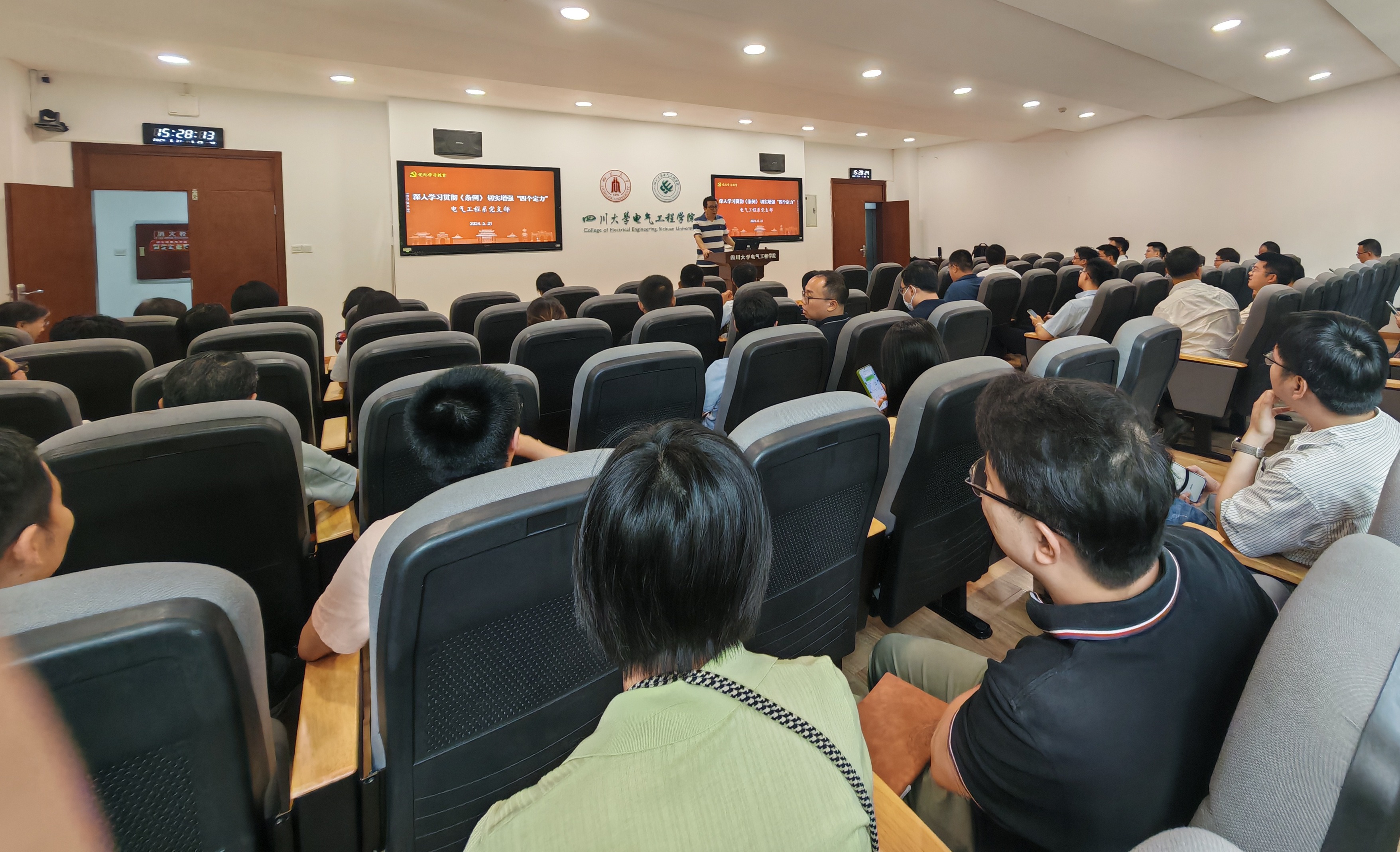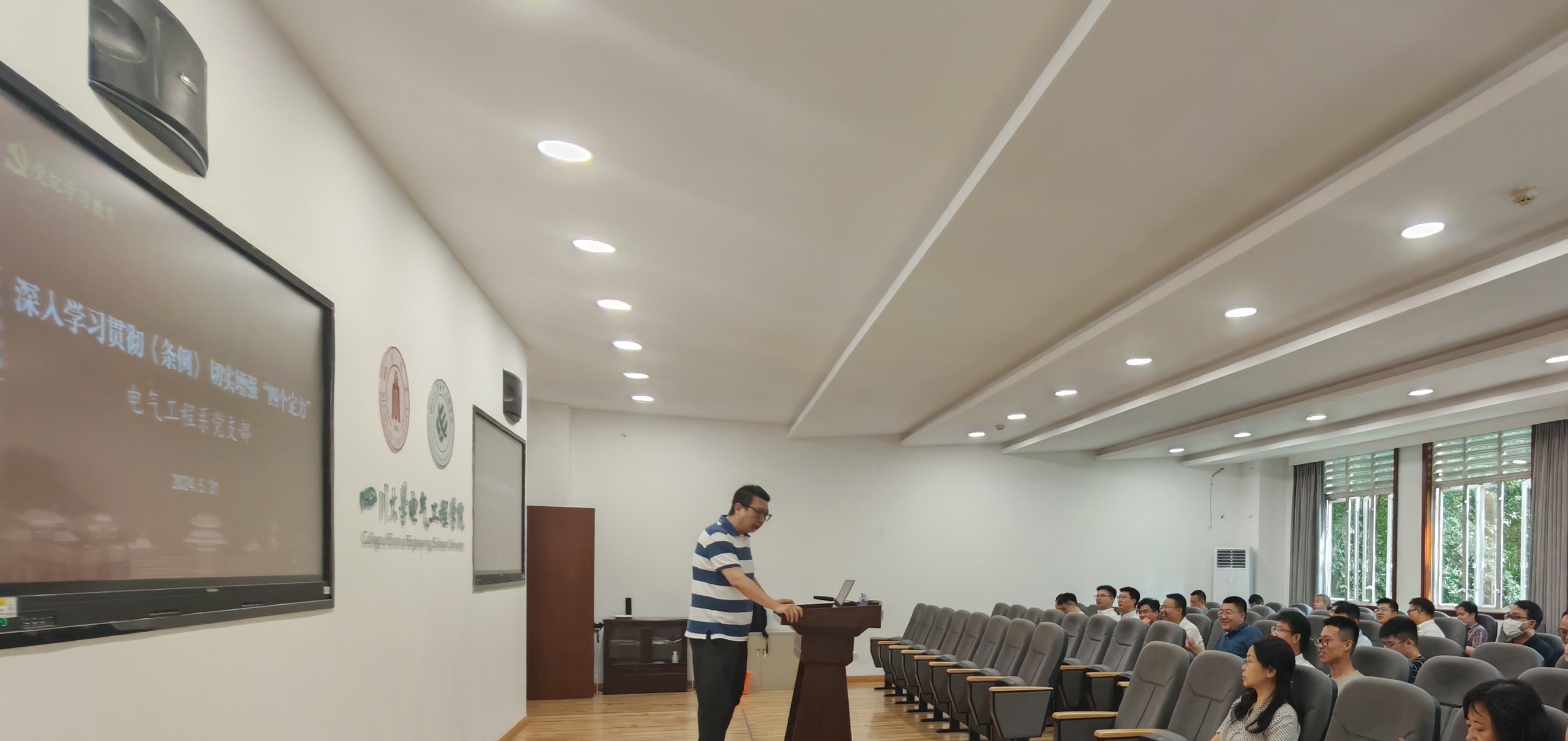 5月31日下午,为深入学习《中国共产党纪律处分条例》(以下简称《条例》),切实增强党员教师的政治定力、纪律定力、道德定力、抵腐定力,电气工程系党支部书记陈实以“深入学习贯彻《条例》,切实增强‘四个定力’”为题给全系党员教师讲授了党纪学习教育的专题党课。