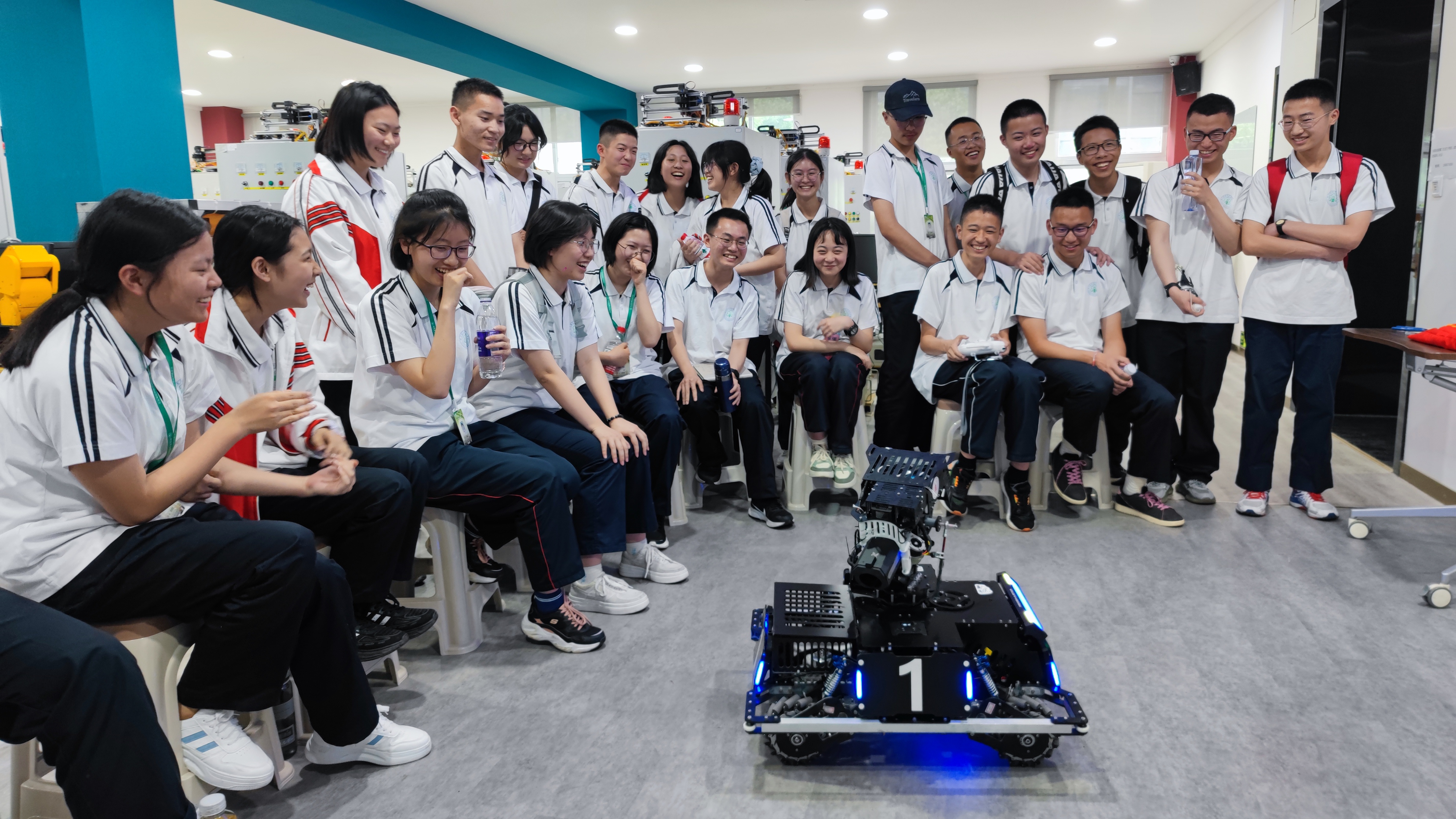 研学活动中,同学们参观了高电压实验室、新型电力系统与综合能源系统实验室、能源互联网实验室、新能源实验室、继电保护实验室等,了解了特高压、新型电力系统、清洁能源、综合能源系统及电力控制保护技术等先进能源技术及行业趋势,当了解到目前我国的特高压等多项电力技术处于世界领先时,现场响起了同学们自豪的掌声。在云计算实验室工作人员向大家科普了云计算及其构成等知识;在智能控制及工业机器人实验室,同学们与机器人互动,施教于乐,拓展了大家的视野,激发了学习热情。