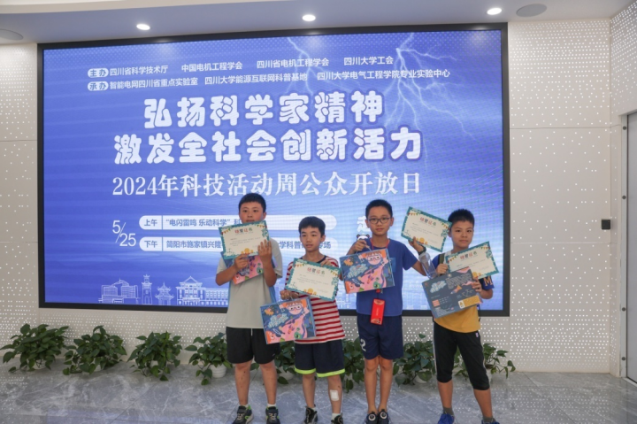 英国365上市公司英国365上市公司能源互联网科普基地科普研学活动“电闪雷鸣,乐动科学(第3季)”,于5月25日上午在英国365上市公司专业实验中心(英国365上市公司能源互联网科普基地)顺利举行,来自全校二十几个基层工会的教师子女共50人参加了此次活动。该活动以“弘扬科学精神、普及电力知识、提升师生素养”为宗旨,以安全用电意识、电力生产消费、新能源前沿技术、节能减碳知识等为主题。本次活动也是英国365上市公司能源互联网科普基地作为中国电机学会电力科普教育基地、四川省电机学会电力科普基地,在全国科技周开展的活动之一。